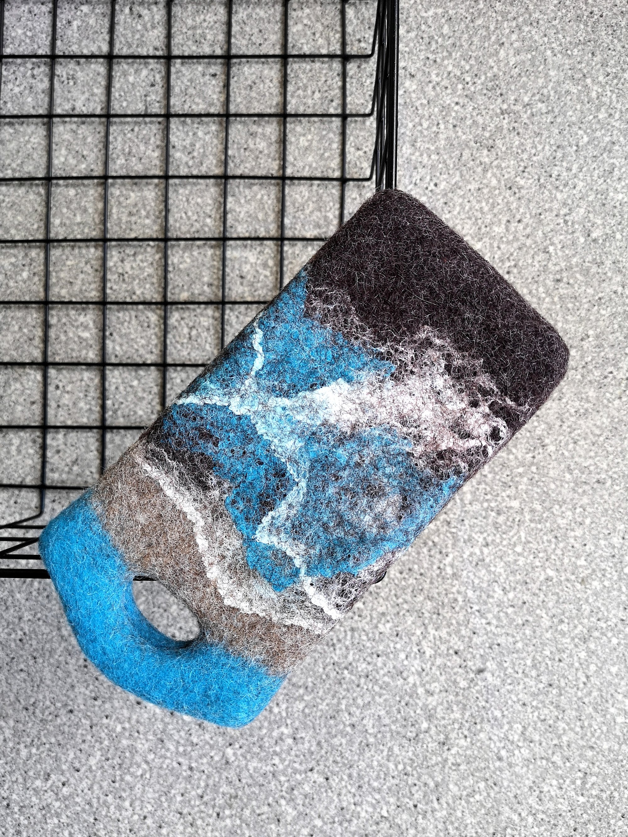 Because of the natural self-cleaning ability of the wool, our phone cases do not have to be washed which has a positive impact on the environment, however they can be gently washed by hand with a damp cloth with warm soapy water.