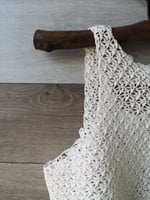 This little bralette is hand crocheted with natural linen yarn. Light, airy, and perfect for sunny days or salty sea air. The bralette design is slightly shorter, a bit wider through the body, with slim straps that let you move freely and feel the breeze.